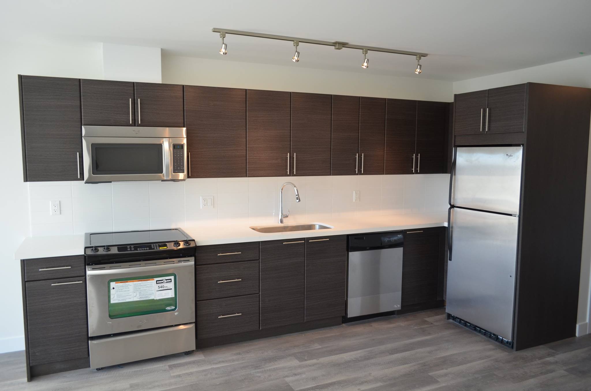 Built by Vittori Developments, this limited collection of one and two bedroom plus den condos ranges in size from 450 to 926 square feet. The contemporary interiors feature, large windows, brushed finish door hardware, rocker light switches, high end flooring within the suite including designer ceramic tile floors in the bathrooms, high end quartz countertops, stainless steel appliances, Kohler bathroom fixtures in the bath, and ample closet storage space.